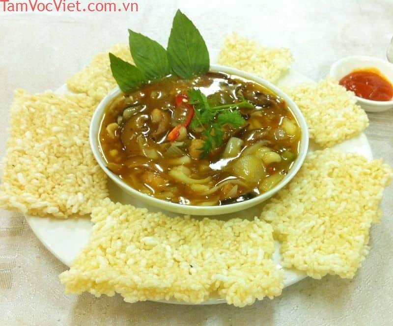 Lớp cơm được chiên vàng giòn, ăn kèm với nước sốt sánh đặc, đậm vị, tạo nên sự kết hợp vừa đơn giản vừa “gây nghiện”. Đây là món ăn mà hầu như du khách nào đến Ninh Bình cũng muốn thử.