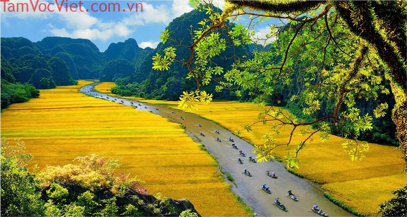 Đặc biệt vào mùa lúa chín, toàn bộ khu vực được nhuộm vàng rực rỡ, tạo nên một bức tranh thiên nhiên sống động và đầy ấn tượng. Đây cũng là thời điểm lý tưởng để tham quan, chụp ảnh và cảm nhận trọn vẹn vẻ đẹp đặc trưng của Ninh Bình.