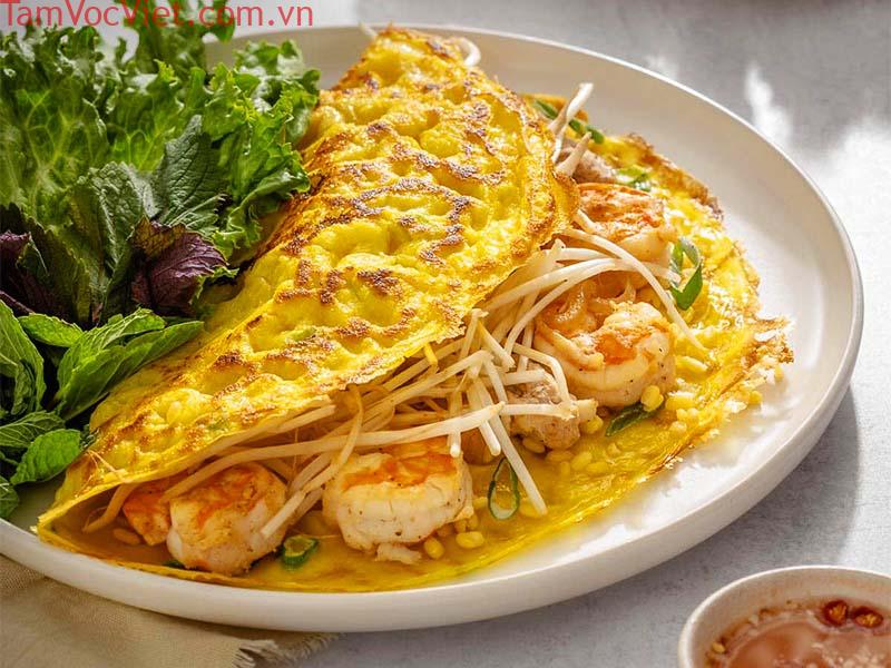 Không quá cầu kỳ nhưng lại vô cùng hấp dẫn, bánh xèo Phan Thiết nổi bật với lớp vỏ giòn rụm, nhân tôm thịt thơm lừng. Cuốn cùng rau sống và chấm nước mắm pha chuẩn vị, mỗi miếng bánh là sự hòa quyện hoàn hảo của nhiều tầng hương vị.
