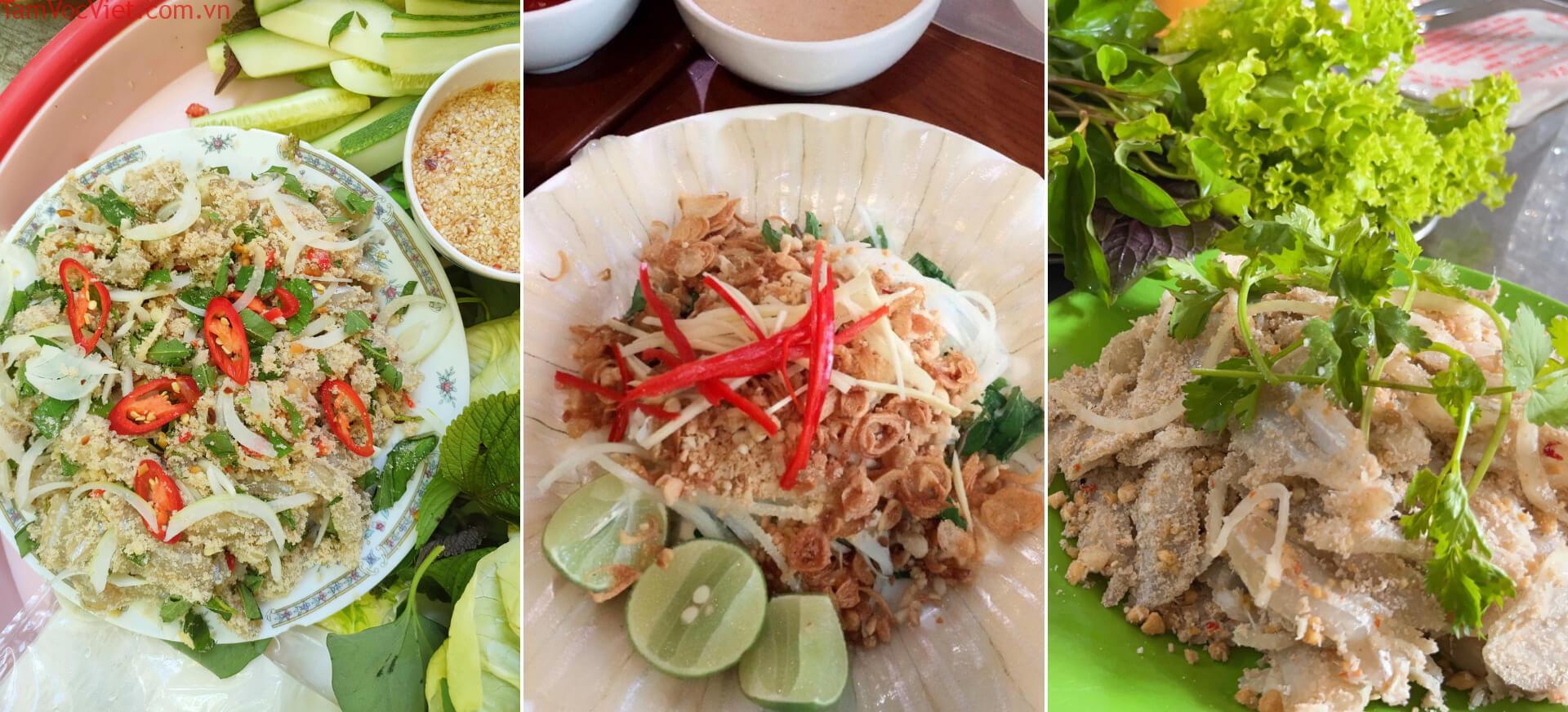 Món ăn thể hiện rõ nét tinh hoa ẩm thực biển. Cá mai tươi rói được chế biến khéo léo, trộn cùng rau sống và nước sốt chua ngọt hài hòa, tạo nên hương vị thanh mát nhưng vẫn đậm đà, khiến thực khách ăn một lần là nhớ mãi.