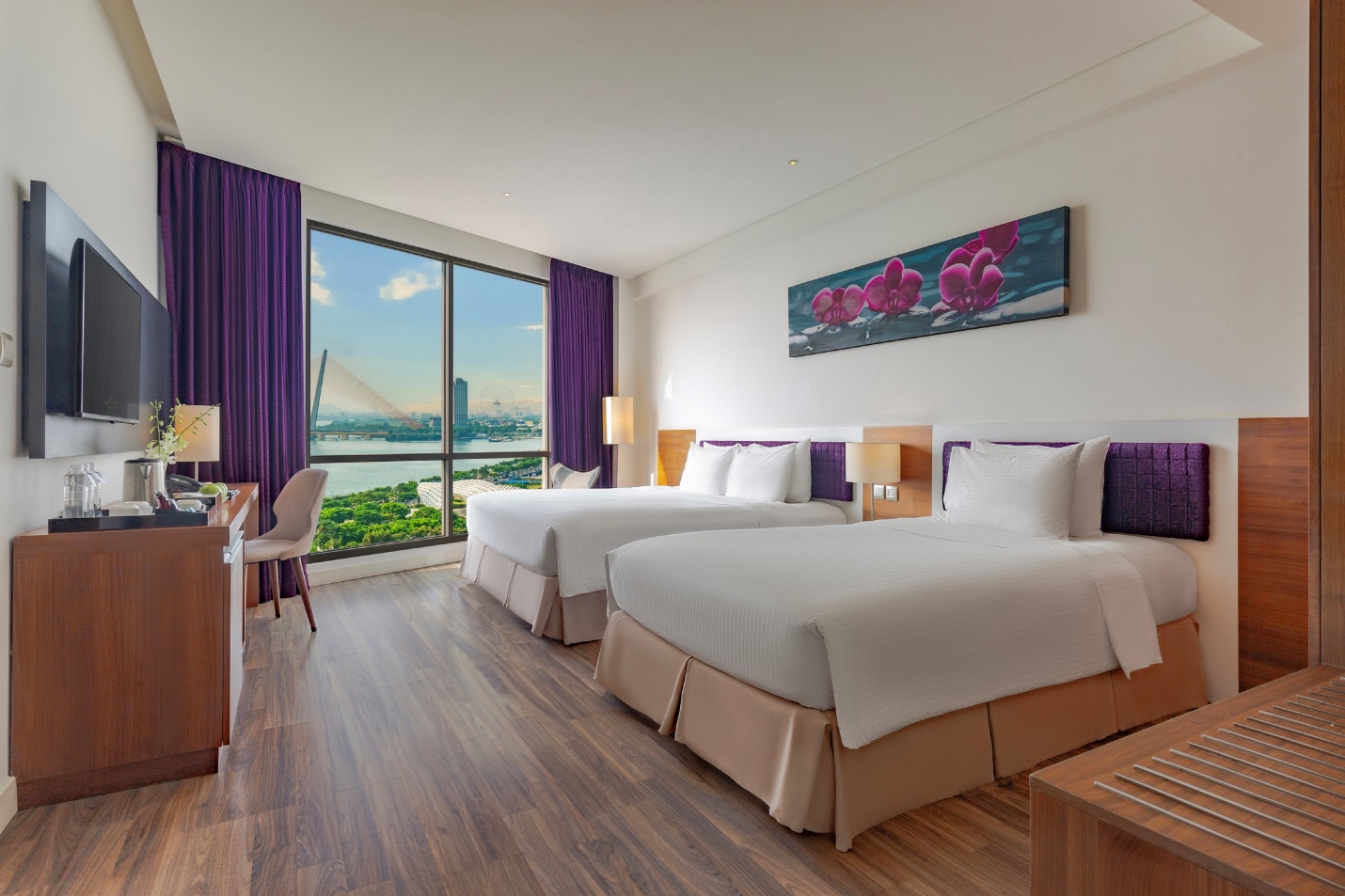 - View đẹp: nhiều phòng nhìn ra dòng Sông Hàn và các cây cầu biểu tượng thành phố.