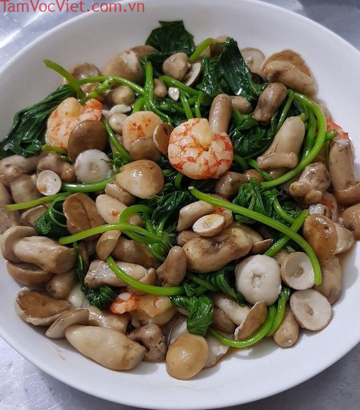 Nấm tràm không phải nơi nào và mùa nào cũng có. Đặc sản này chỉ có vào khoảng tháng 4 và tháng 7-8 Âm lịch, mỗi vụ kéo dài khoảng 5-7 ngày sau mỗi đợt mưa. Nấm mọc trên cây tràm, có vị đắng, được dùng xào với rau khoai, thịt heo, tôm hoặc nấu canh, cháo.