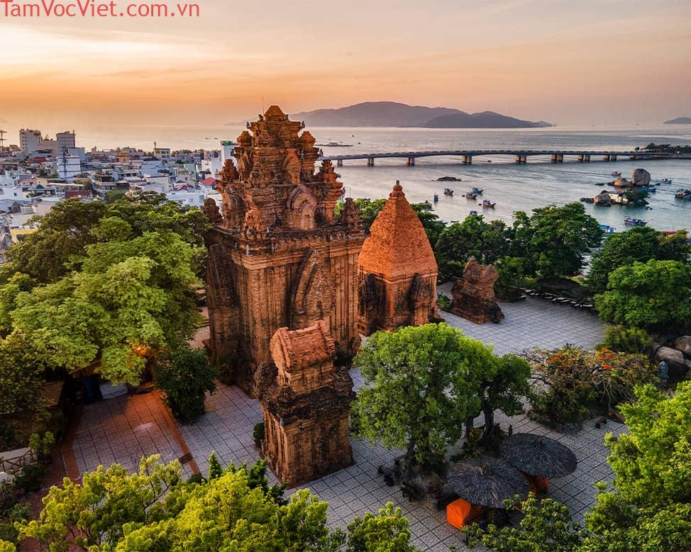 Tháp Bà Ponagar: Quần thể đền đài Chăm Pa cổ kính tọa lạc trên đồi cao bên dòng sông Cái. Những viên gạch nung đỏ rực dưới nắng hè và những điệu múa Chăm say đắm lòng người tạo nên một không gian văn hóa đầy huyền bí.