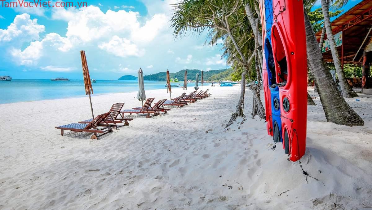 Bãi Sao nổi tiếng với bãi cát trắng mịn như kem và làn nước xanh ngọc trong vắt. Đây là địa điểm lý tưởng để tắm biển, chèo SUP, chụp ảnh sống ảo và tận hưởng không khí yên bình. Buổi sáng và chiều hoàng hôn là thời điểm đẹp nhất để tham quan nơi đây.