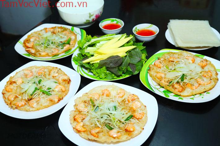 Bánh xèo Quy Nhơn nhỏ, vỏ giòn, nhân tôm tươi vừa đánh bắt nên gọi là “tôm nhảy”. Ăn kèm rau sống, bánh tráng mỏng và nước chấm đậm đà. Hương vị dân dã nhưng rất cuốn, được du khách yêu thích.